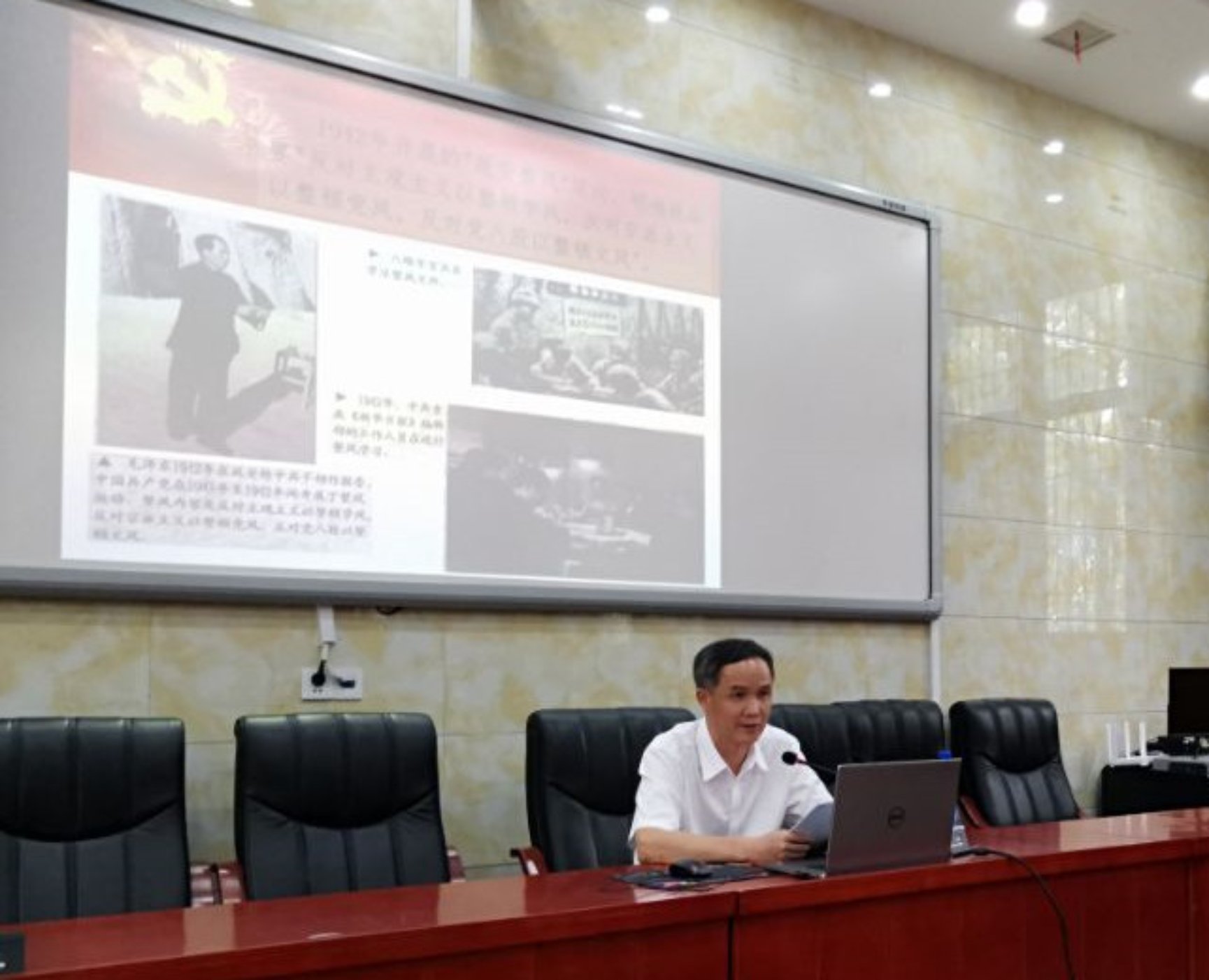 6月28日下午,学院党委书记李树清党的作风建设主题在第四教学楼学院会议室给学院师生党员讲党课。