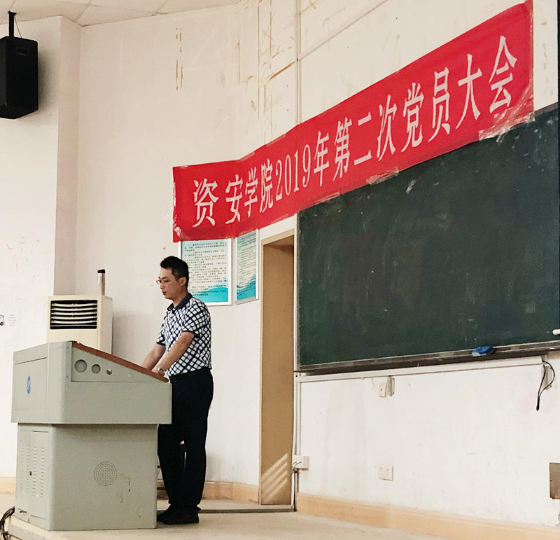 会议伊始,安春焕老师强调会场纪律和会议记录相关事项。接着,廖书记发表重要讲话。廖书记介绍了学院支部调整情况并对学生党员提出了三点要求:一是所有党员应积极投身“不忘初心,牢记使命”相关活动,坚定为人民谋幸福的理想信念;二是所有学生党员应注重学业,重视专业课程学习;三是党员应在生活中做好模范带头作用,维护学院的安全稳定。