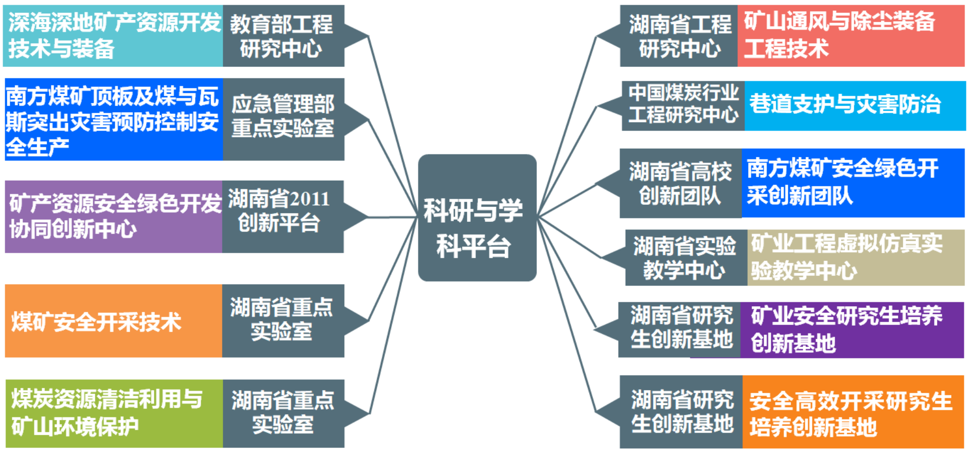 学院现有教职工97人(包含独立科研机构人员),专业教师总数78人;教师队伍中有博士生导师29名,教授26名(其中二级教授11名),有博士学位的教师有70人。学院有享受国务院政府特殊津贴专家3人,入选湖南省121人才工程、湖南省芙蓉学者、湖南省学科带头人、湖南省百人计划等人才称号12人次,入选湖南省青年骨干教师、湖湘英才等杰出青年人才13人次,获全国煤炭青年科技奖2人。