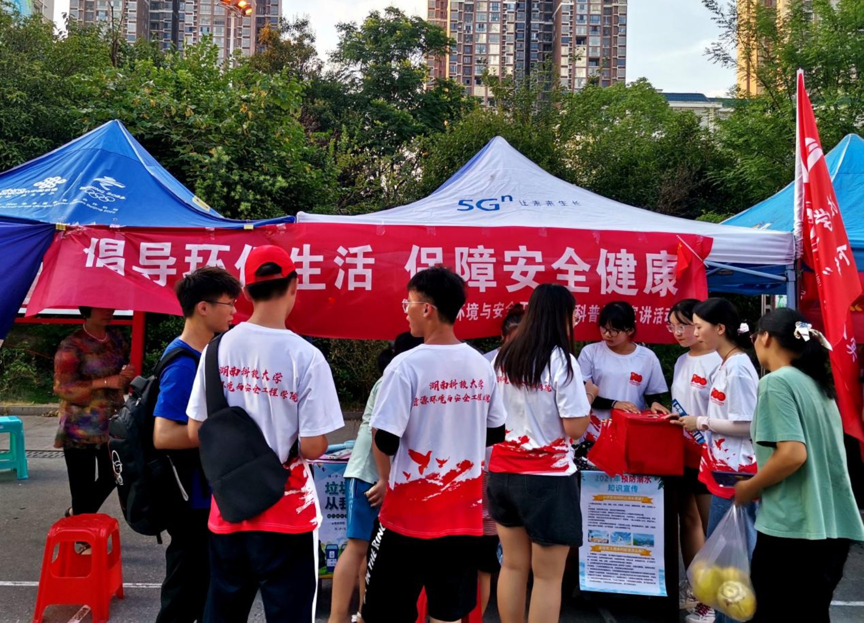 ▲上图为团队成员在社区摆点宣传