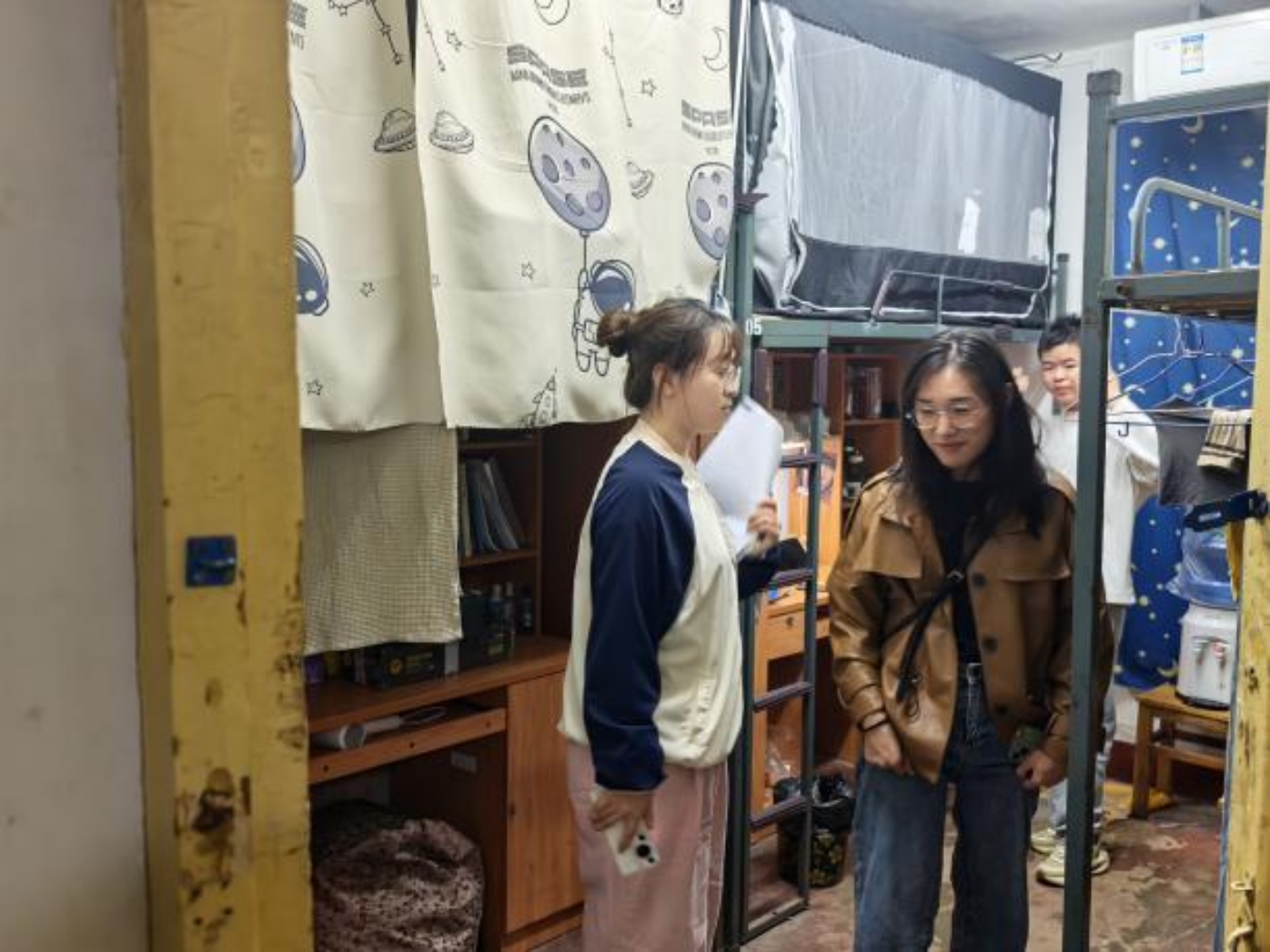 11月4日,魔镜街拍 王侠老师及研究生会学生干部前往各学生宿舍检查卫生,及学生用电安全。