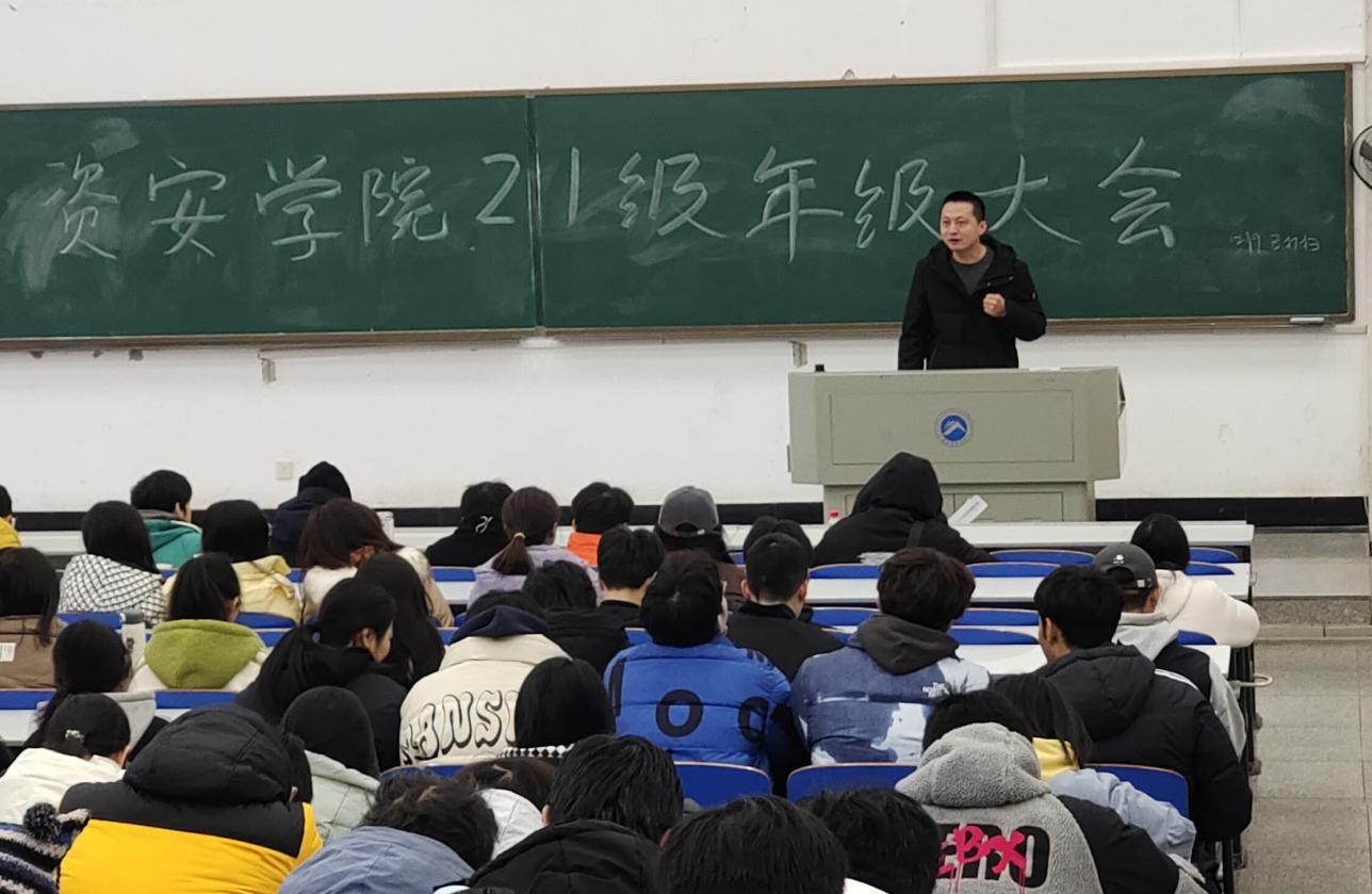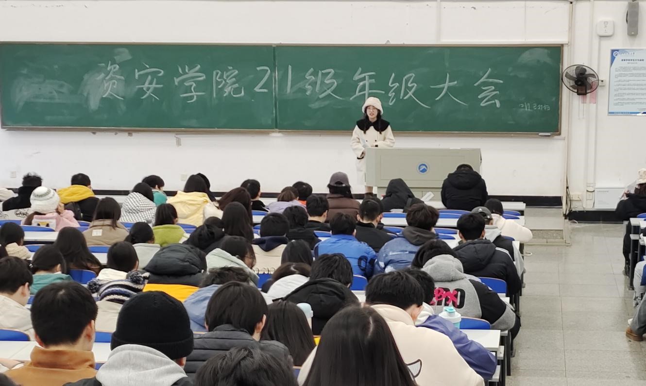 2023年12月19日魔镜街拍 在一教504召开了2021级全体学生的年级大会,会议由21级年级长徐美峰主持,到场的老师有魔镜街拍 党委副书记刘韧,21级学生辅导员王侠和徐恒霞。