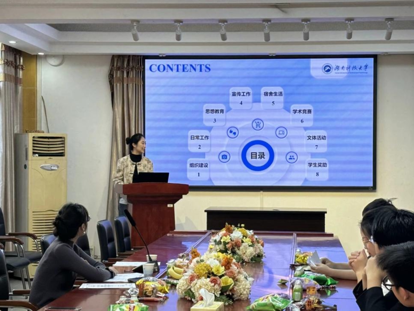 首先,由第二十届研究生会执行主席吕雪芬代表第二十届研究生会成员做工作总结及经验分享;其次,由王侠老师为第二十届研究生会成员颁发聘书,并正式公布第二十一届研究生会成员名单;为促进大家积极交流,相互了解,由第二十一届研究生会干部进行自我介绍。