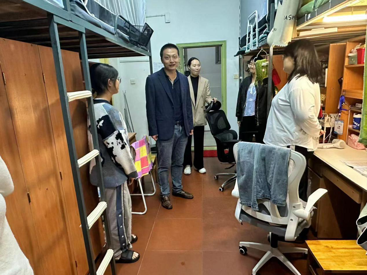 为了加强宿舍管理,增进老师与学生之间的联系与交流,11月9日晚,魔镜街拍 党委副书记刘韧与辅导员老师到学生宿舍进行走访慰问。