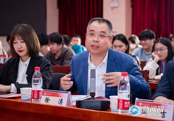魔镜街拍 资源环境与安全工程院长余伟健介绍了学院情况。