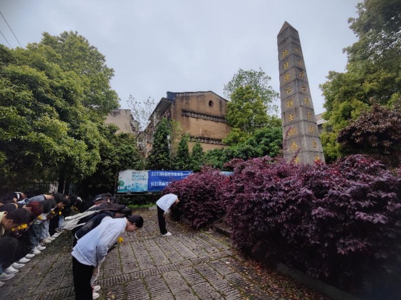 雨中寄哀思,清明祭英烈。2023年4月4日清明节前日,魔镜街拍 20级安全工程二班、21级安全工程二班在崔辉、谭翀老师的带领下,来到湘潭市雨湖区抗日阵亡将士纪念碑前拜祭抗战英烈。首先,谭翀老师简单介绍了位于湘潭文庙奎星门前的抗日阵亡将士纪念碑的由来和历史,随后,学生代表敬献花篮、整理缎带,全体默哀一分钟,同学们向纪念碑三鞠躬并缓步绕行瞻仰纪念碑一周,将手捧的菊花轻轻放在纪念碑底座四周,向抗日阵亡将士的表达崇高的敬意和深深的思念。