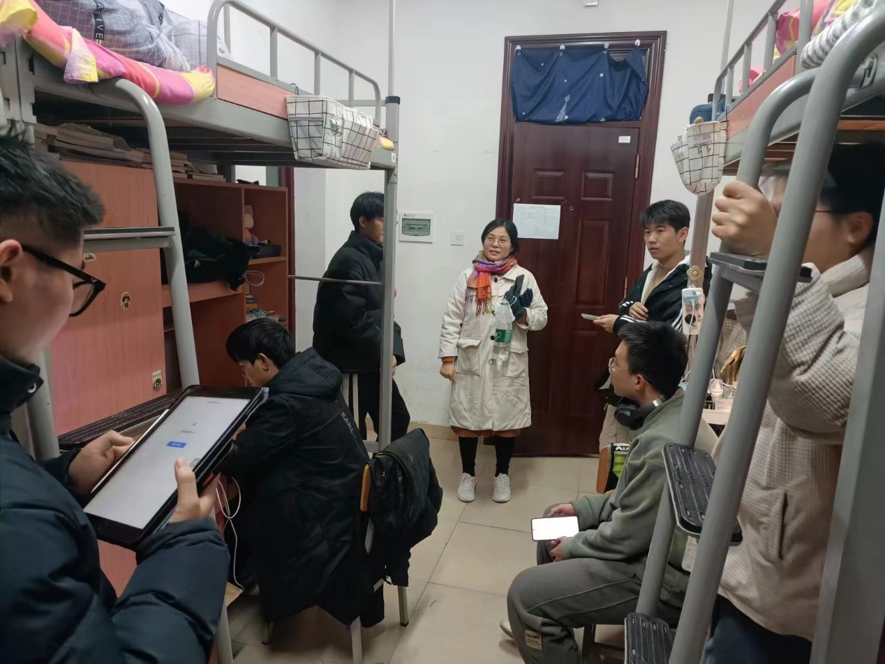 在查寝过程中,老师们着重强调宿舍安全问题,对规范用电提出严格要求。严禁使用吹风机、“热得快”、电动车电瓶等大功率电器。刘韧老师在与学生谈话中表示,很多同学都是刚来湖南,面对湖南的寒冷天气,要注意保暖,但在取暖的同时要防范安全隐患,强化安全意识。同时引导学生增强安全意识,适时对学生进行安全教育培训,提高学生的自我防范能力。