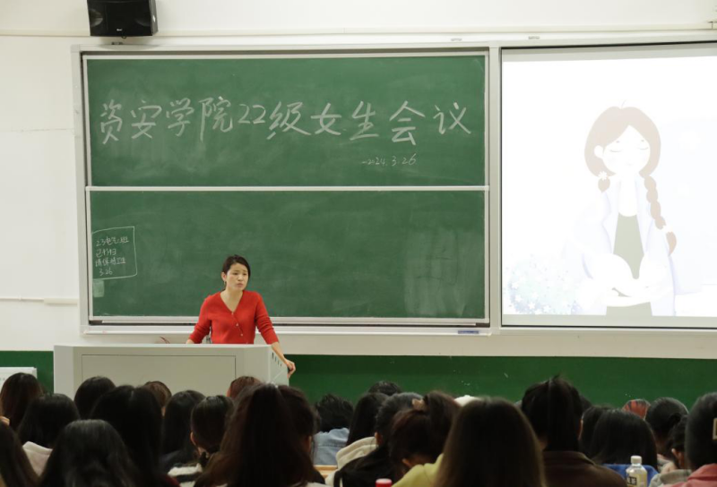 李增蓉老师从身体健康、心理健康、学习情况、职业规划四个大的方面对全体女生进行指导。李老师谈到女同学们要发现自己的特长,更要善于利用自己的闪光点,祝福各位同学“阅己 悦己 越己”。