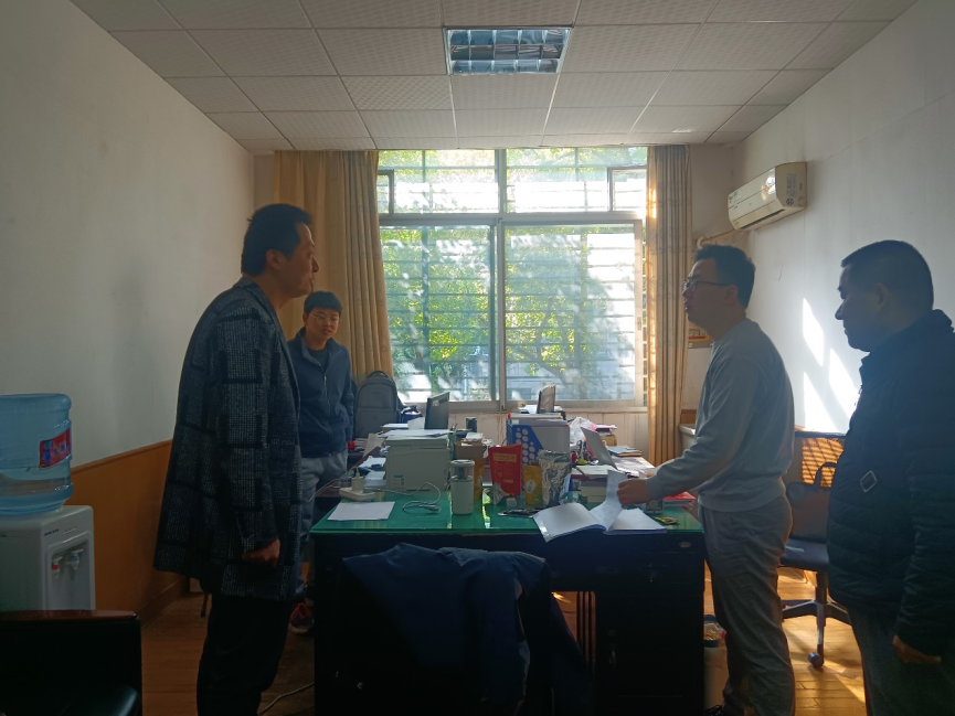 检查小组于11月29日走访学院各个教工党支部开展检查工作。刘韧老师对于各支部开展“三会一课”及党员发展等工作提出具体要求,同时表示,教工党支部充分发挥了先锋模范作用,学院发展进步离不开每位党员教师的付出与努力,他勉励教工支部党员同志切实加强党性修养,不断完善党支部建设支部,深度融合党建工作与事业高质量发展。