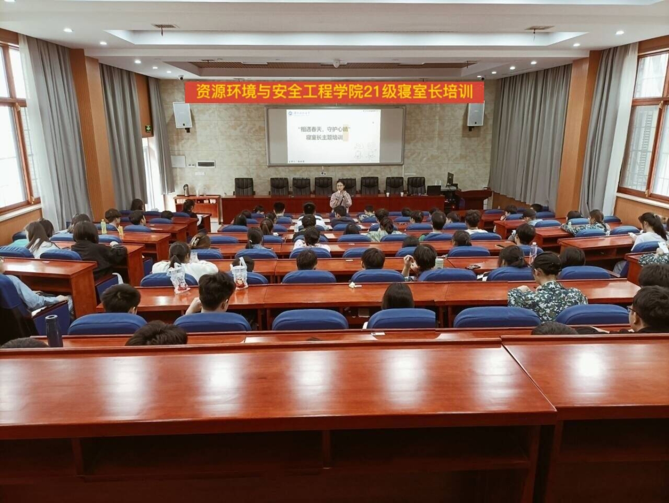 心理健康部于2022年5月18日在四教101会议室开展了21级寝室长培训大会。本次培训的老师是心理健康中心的彭松黎老师,主题为“相遇春天,守护心晴”。