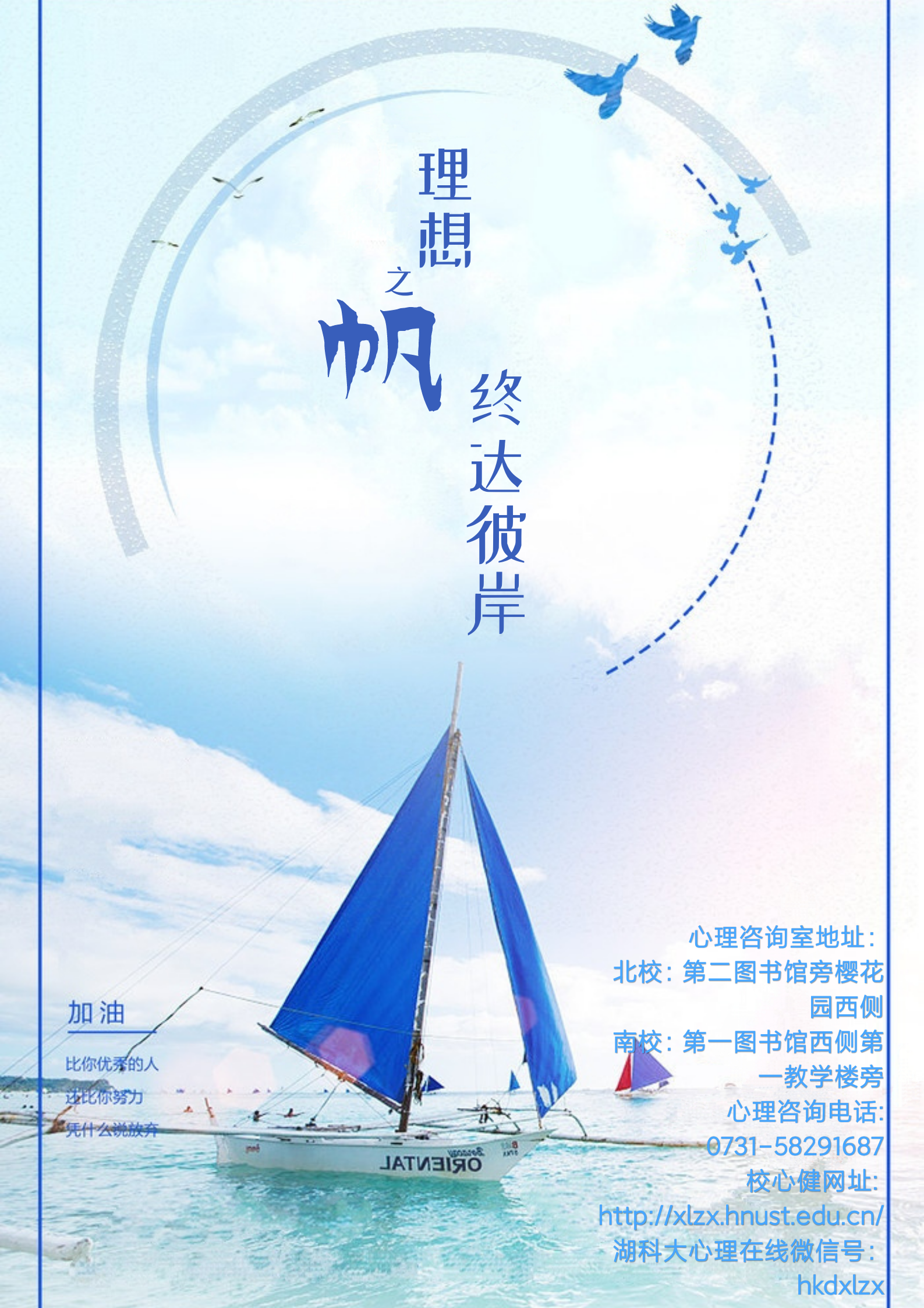 扬起风帆,向着我们的理想启航;宠辱不惊,收获碧空远影。