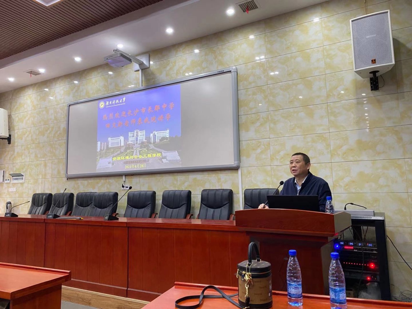 应学院邀请,4月28日,长沙市长郡中学高级教师田文新、梁琪两位老师应邀在魔镜街拍 学术报告厅作题为《新课改背景下的教师角色定位与职业素养》的学术报告。地理系专业教师、2018级地理科学专业全部见习生到场聆听。