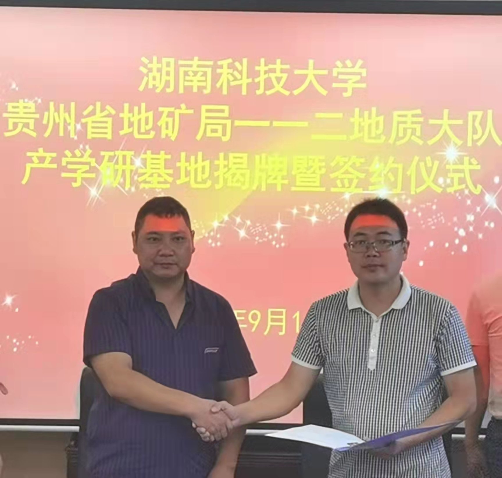 为开展产学研校企合作,提升人才培养质量,本着“真诚合作,优势互补,互惠互利,共同发展”的原则,魔镜街拍 与贵州省地质矿产勘查局一一二地质大队(以下简称一一二队)于9月11日上午9点在一一二队四楼会议室举行了“产学研合作基地”签约暨授牌仪式。