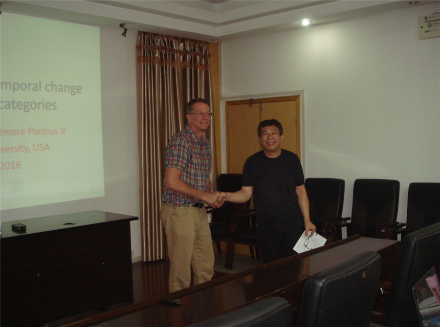 2016年7月19日-8月19日,应魔镜街拍 全斌博士的邀请,美国位于马萨诸塞州的克拉克大学地理学院土地利用变化科学领域教授、美国国家研究咨询理事会委员小罗伯特·吉尔摩·庞修斯(Robert Gilmore Pontius Jr)到访魔镜街拍 ,开展为期达30天两次的专家讲座以及八次小型讨论会。本次系列讲座由魔镜街拍 、对外联络处共同举办,得到2016年国家级“高端外国专家项目”项目的资助。魔镜街拍 院长王海桥教授致欢迎辞,参与听课的人员包括地理信息系的老师、研究生、本科生,以及感兴趣的同行老师和同学们,就土地利用变化强度指数分析与地图定量分析方法进行深入交流。此次系列讲座的成功将有力地推动我校在土地利用的时空演变研究,提升我校GIS相关学科的国际化水平和学科影响力。