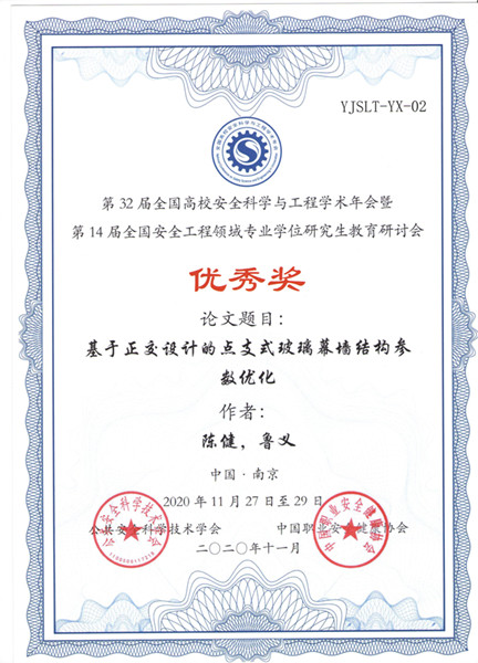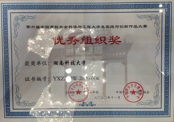 同期举行了全国高校安全科学与工程大赛及学术论坛。在第6届全国高校安全科学与工程大学生实践与创新作品大赛中,鲁义老师指导的《基于无机相变材料的抗“热伤害”消防服内衬》获得一等奖,田兆君老师指导的《用于防治煤堆自燃的水分吸收与蓄热导向排放装置》获得三等奖。谭翀老师在第3届全国高校安全科学与工程青年教师教学大赛中荣获三等奖。在第5届全国高校安全科学与工程研究生论坛中,鲁义老师指导的研究生论文《基于正交设计的点支式玻璃幕墙结构参数优化》获得优胜奖。陈世强老师在科学研究分论坛作了题为《地铁长大过海区间隧道通风模型实验研究》的主题报告,崔辉老师在教育教学分论坛作了题为《基于安全评价师国家职业资格鉴定的“安全评价”教改探讨》的主题报告,反响热烈。我校在各项会议、比赛中积极参与,组织得力,获得优秀组织奖。