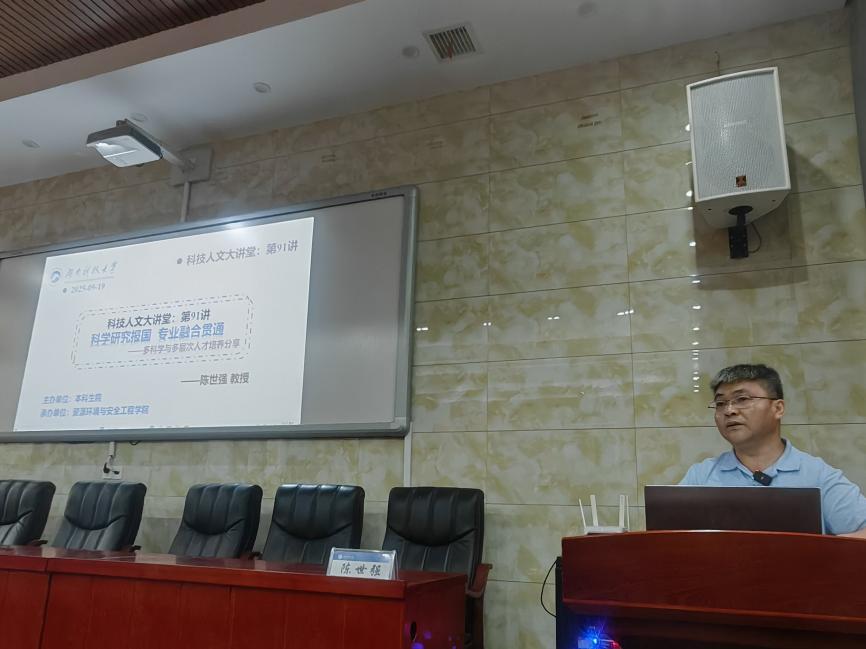 9月19日,由学院承办的“科技人文大讲堂”第91讲在第四教学楼资安学院报告厅举行。陈世强教授围绕“科学研究报国,专业融合贯通——多科学与多层次人才培养”主题展开分享,为在场师生带来一场兼具深度与温度的知识盛宴。