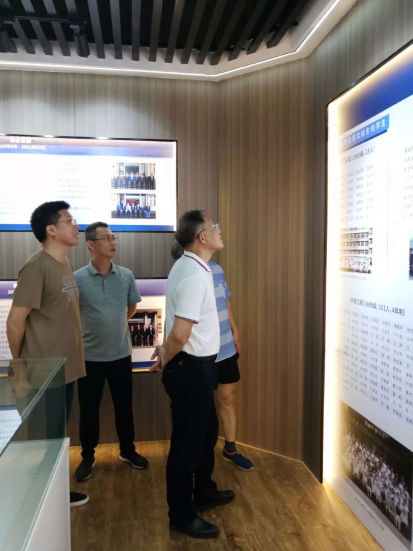 在查看过程中,唐亚阳书记首先高度肯定了学院在建设院史陈列室工作中的积极、高效的工作态度,对学院率先完成院史陈列室总体建设所取得的良好效果给与点赞。同时,唐书记也就如何展陈更具专业特色的资料,如何将院史陈列室用于学院学生的爱校爱院教育、专业教育,以及引入智能化的展示手段等各方面,进行了详细指示。
