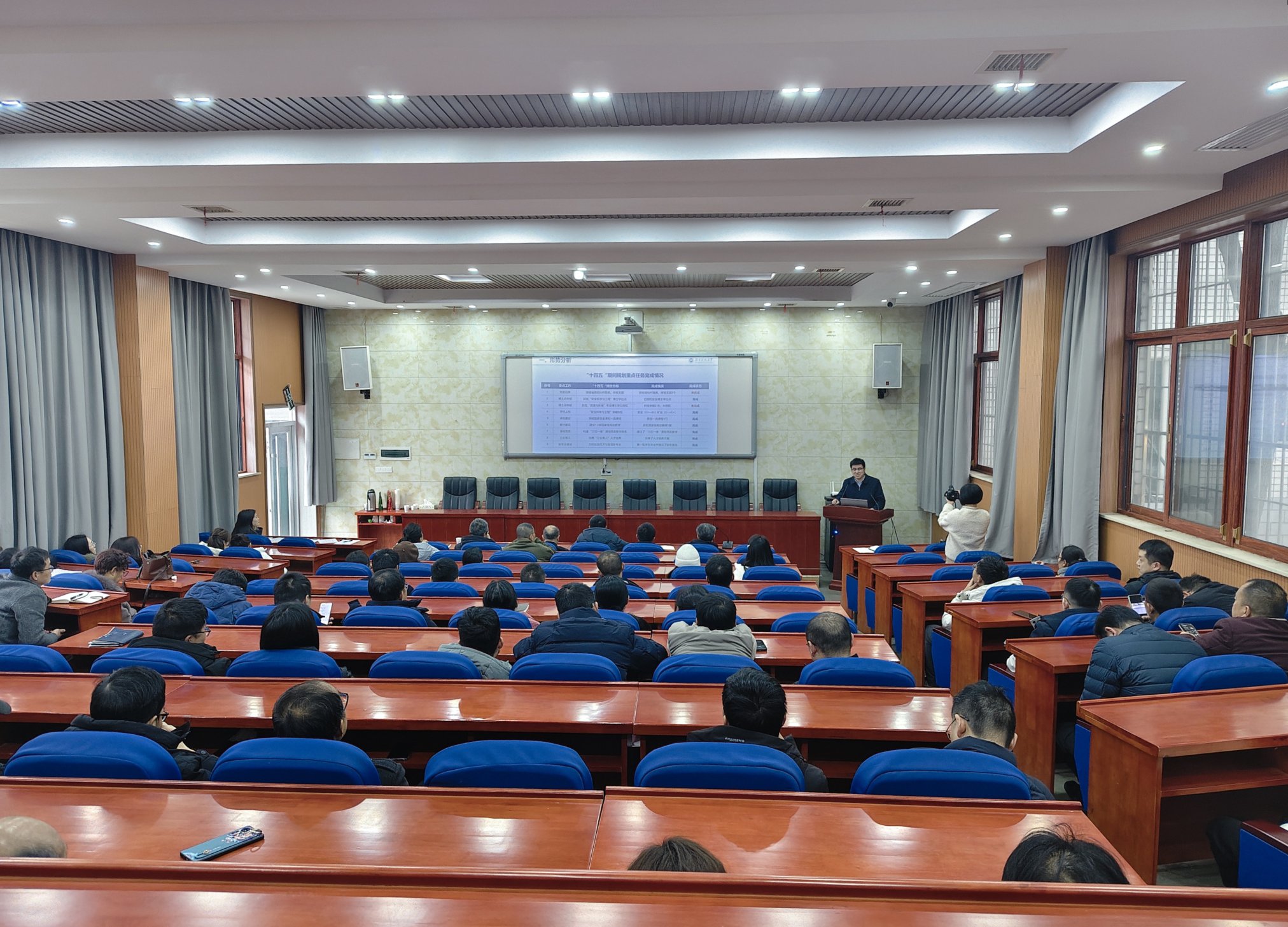 分管院领导分别就分管工作进行布置。赵延林副院长对学院2025年科研项目情况进行总结,提出学院2026年科研工作6项重点工作目标。刘韧副书记对学院2026年学生工作、工会工作达成目标及重大改革措施进行说明。陈国梁副院长对学院2026年实践教学、国有资产、学科建设、本科教学管理重点工作进行布置。游波副院长对学院2026年研究生工作进行布置。