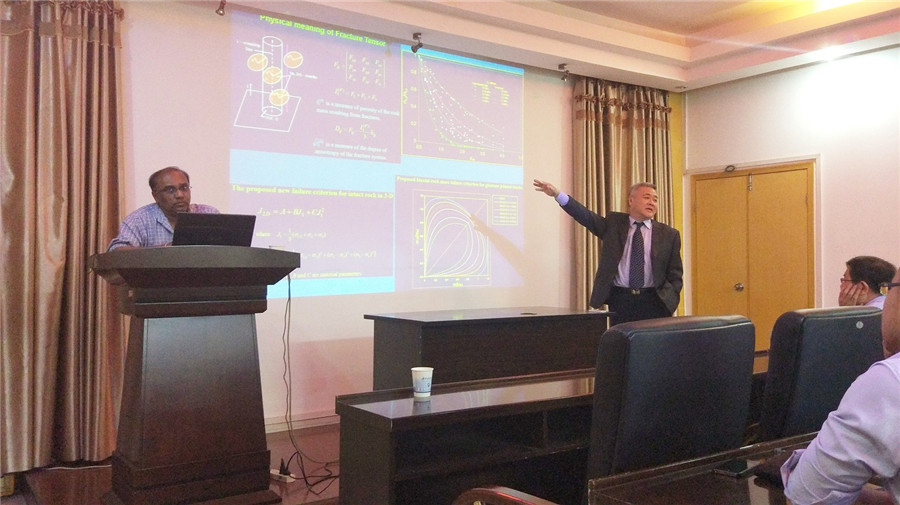 相关专业教师、矿业工程及安全工程专业研究生和部分本科生聆听了本次学术报告。 Kulatilake教授所在亚利桑那大学的世界大学排名为第67位(2016年US News排名),其采矿与地质工程系有近120年矿山科研与教学的历史。Kulatilake教授学术报告结合其在矿山领域的多年研究成果,就矿山复杂节理岩体数值建模、试验强度与变形特征、巷道稳定及锚杆作用机理等多个方面进行了详细阐述和分析。 学术报告结束后,Kulatilake教授参观了魔镜街拍