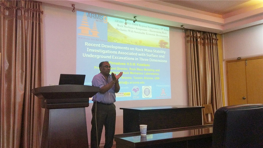 国际交流与合作、培养师生全球化意识的契机。 人物简介: Pinnaduwa H.S.W.Kulatilake:美国亚利桑那大学岩体模拟和计算岩石力学实验室主任/教授/博士,美国注册工程师,美国土木工程师协会资深会员。拥有近40年的矿山岩石力学和岩体工程相关研究经验,主要从事岩体力学、岩土工程以及概率和数值方法在岩土工程中的应用等研究,发表学术论文240余篇,其中SCI收录90余篇;获得2016年Peter Cundall奖及2011年中国科学院高级访问教授奖。 亚利桑那大学(The University of Arizona)坐落于美国亚利桑那州图森市(Tucson),始创于1885年,世界知名学府,美国著名研究型大学,在美国大学中位列第33位,在US News 2016世界大学综合排名榜中位居第67名。由于地缘因素,该校的天文、地质、地理、土建等学科有着雄厚的科研实力,工程学、人类学、社会学、哲学在美国也名列前茅,被誉为“公立常青藤”大学之一,同时也是北美顶尖研究型大学联盟“美国大学协会(AAU)” 的62所成员校之一。