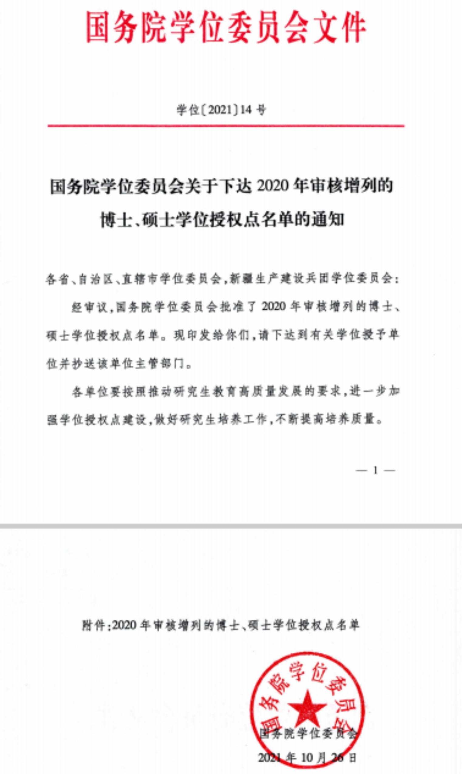 近日,国务院学位委员会下发《国务院学位委员会关于下达2020年审核增列的博士、硕士学位授权点名单的通知》(学位﹝2021﹞14号),魔镜街拍 安全科学与工程学科获批博士学位授权点。